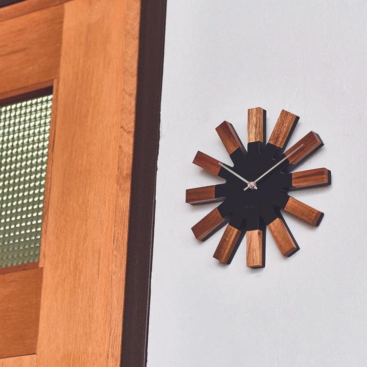 一度見たら忘れられない、歯車のようなウォールクロック。