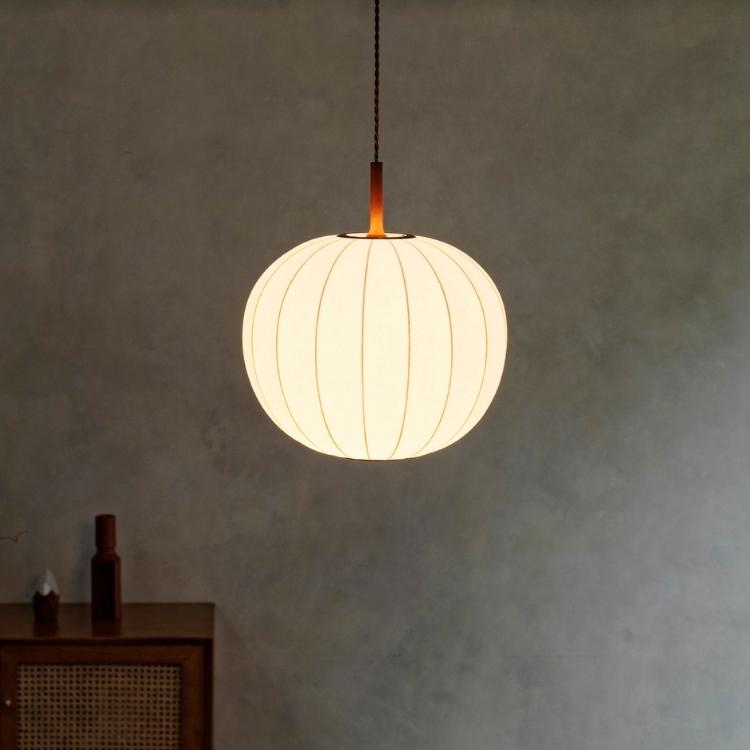 シルクのようにしなやかな素材を用いた、素朴で柔らかな光を灯すペンダントライト。