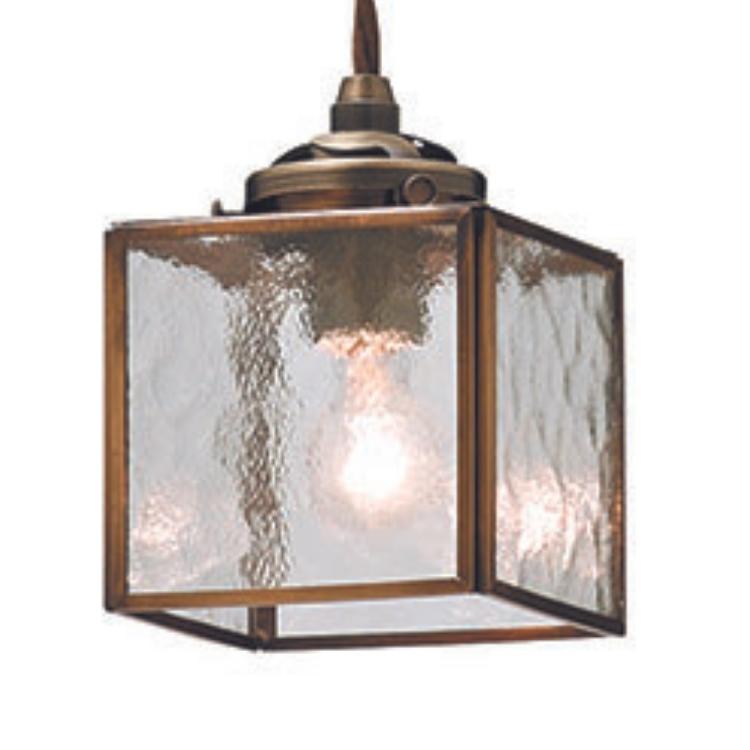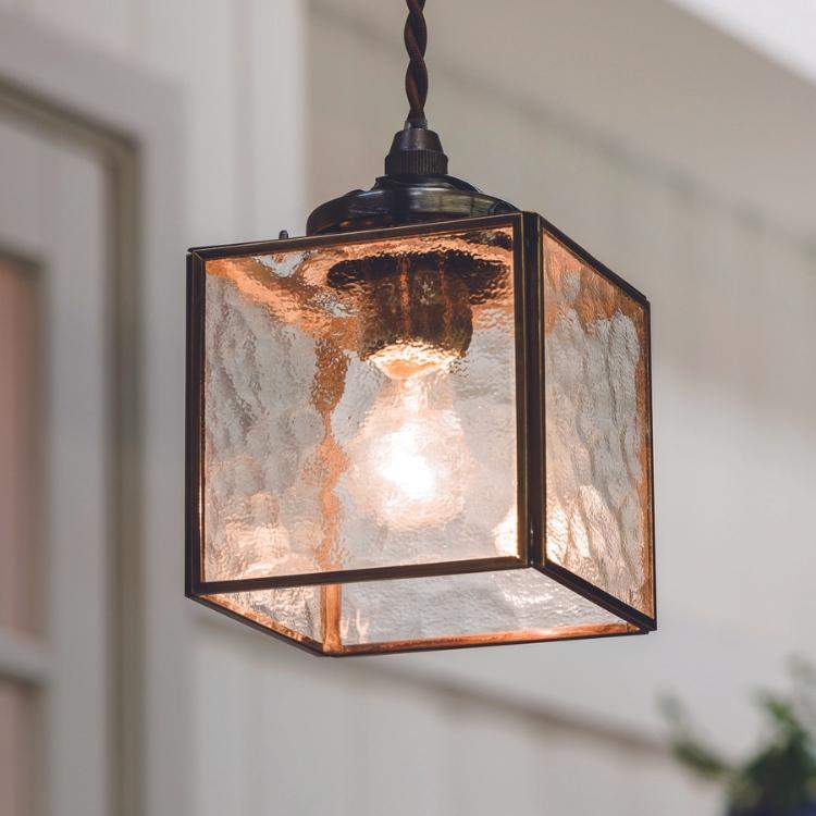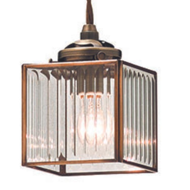 ガラスを繋いでキュービックフォルムをかたどったレトロなペンダントライト。